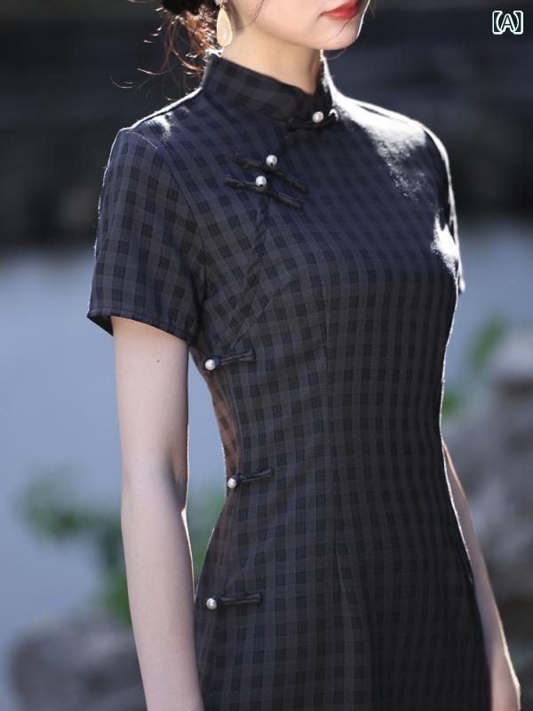 ・カテゴリ: チャイナドレス・スタイル: 文芸レトロ・主な素材: ポリエステル 90-95%・ネックライン: スタンドカラー・襟元: 斜め襟・袖丈: 3分袖・袖タイプ: レギュラー・丈: ロング・スリット: 低め・特徴: ヴィンテージ加工・カラー展開: ダークブルー・サイズ展開: S, M, L, XL, XXL, XXXL・対象: レディース・伸縮性: 微ストレッチ・加工: ノーアイロン