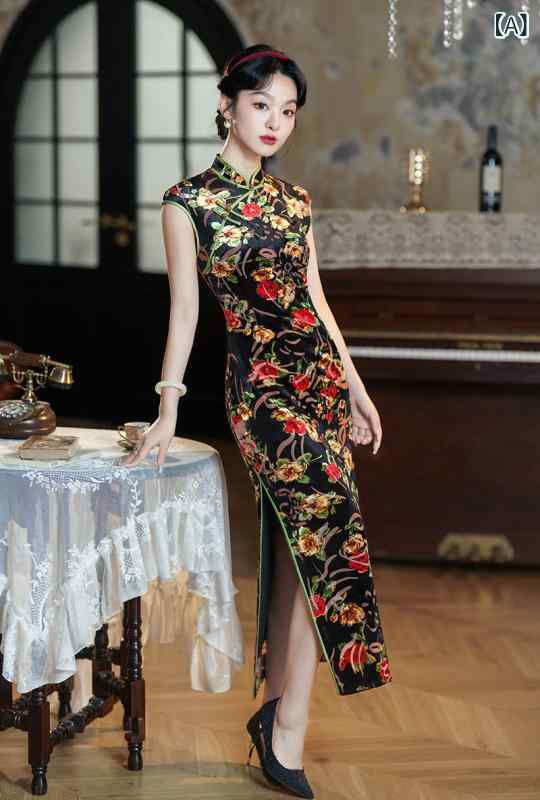 ・カテゴリ: チャイナドレス・スタイル: 中国風、レトロ、フェミニン・主な素材: ポリエステル・主な素材混率: ポリエステル30%~50%・加工: ジャカード織り、プリント・柄: 花柄・ネックライン: チャイナカラー・襟元: 斜め合わせ・袖丈: ノースリーブ・丈: ロング・スリット: ローカット・デザイン: パイピング・伸縮性: 微ストレッチ・性別: レディース・対象: 大人用・サイズ展開: M, L, XL, XXL, 3XL, 4XL