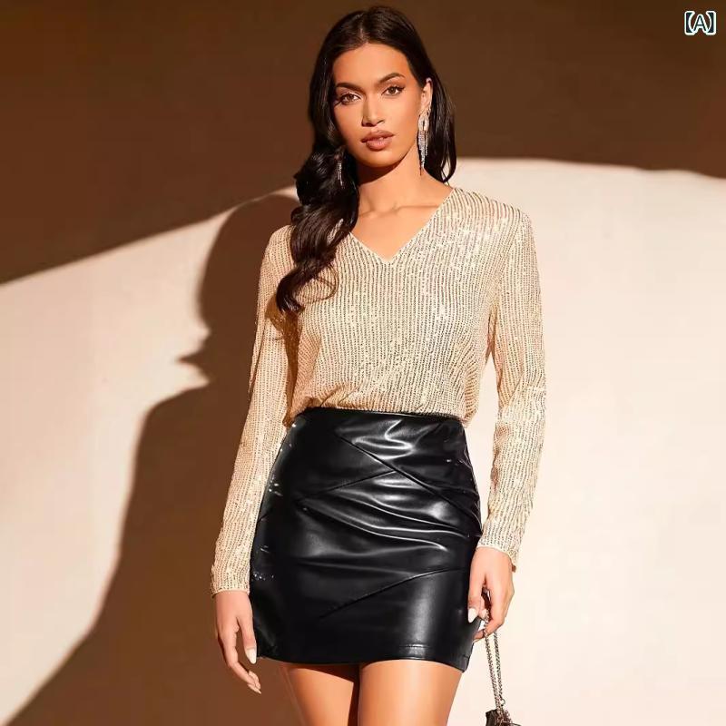 ・カテゴリ: シャツ・スタイル: エレガント、ビジネス・主な素材: ポリエステル90-95%、スパンデックス30%以下・柄: 無地・ネックライン: Vネック・袖丈: 長袖・袖タイプ: シャツ袖・フィット: ルーズフィット・クロージャー: プルオーバー・装飾: スパンコール・カラー展開: アプリコット・サイズ展開: S, M, L, XL