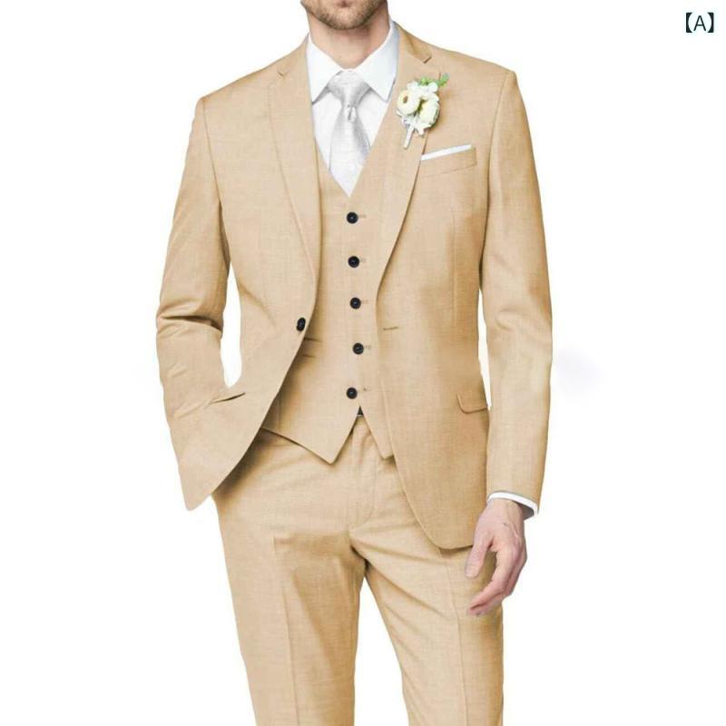 ・カテゴリ: スリーピーススーツ・スタイル: ライトビジネス・主な素材: アセテート繊維70%、麻混紡・前立て: シングルボタン1つ留め・ネックライン: スタンドカラー・フィット: スリムフィット・厚さ: 普通・ベント: センターベント・デザイン: ボタン装飾・仕立て: 半毛芯・着用シーン: カジュアル・カラー展開: シャンパン、ベージュ、ライトブルー、ピンク、ネイビー、ロイヤルブルー、ブラック、レッド、グレー、ワインレッド、ブルー、グリーン、ホワイト、ダークグリーン、パープル、ディープワインレッド、アボカドグリーン、ライトシャンパン、ブルーグレー・サイズ展開: S, M, L, XL, XXL, XXXL, 4XL