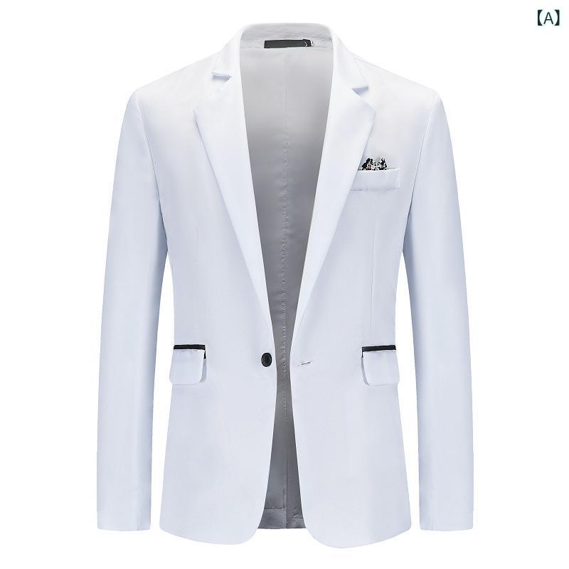 ・カテゴリ: カジュアルスーツ・フィット: スリムフィット・ネックライン: テーラードカラー・フロント: シングルブレスト1つボタン・柄: 無地・主な素材: ポリエステル 85%・ベント: センターベント・着丈: レギュラー・袖丈: 長袖・カラー展開: ホワイト、グレー、ブラック、ピンク、レッド、スカイブルー、ロイヤルブルー、ネイビー・サイズ展開: S、M、L、XL、2XL・対象年齢: 成人・性別: メンズ