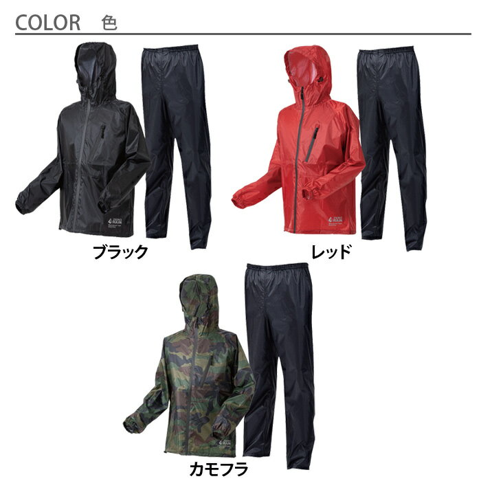メーカーKITA 喜多 サイズ規格M / L / LL / 3L / 4L 耐水圧10,000mm 素材ポリエステル100% カラーブラック / レッド / カモフラ 商品説明長時間着用しても疲れにくい、超軽量レインウェア。