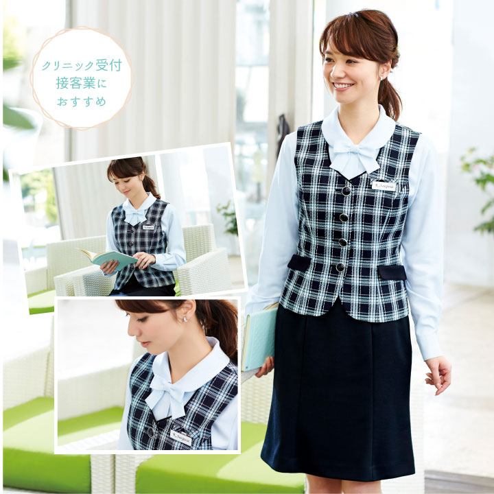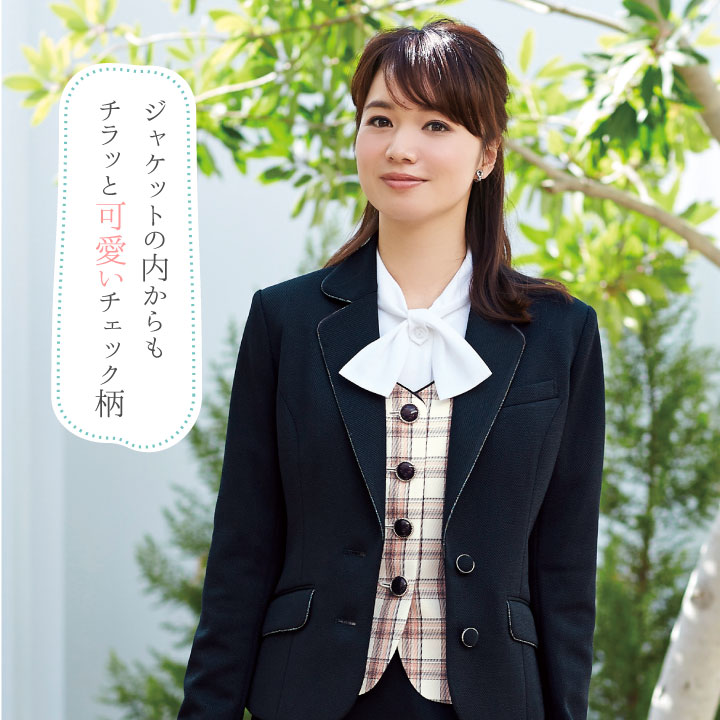 enjoie アンジョア ベスト 商品の特長 スッキリしたカルゼ調のベースに 大柄のチェックが良く映える 上品な素材を使用。