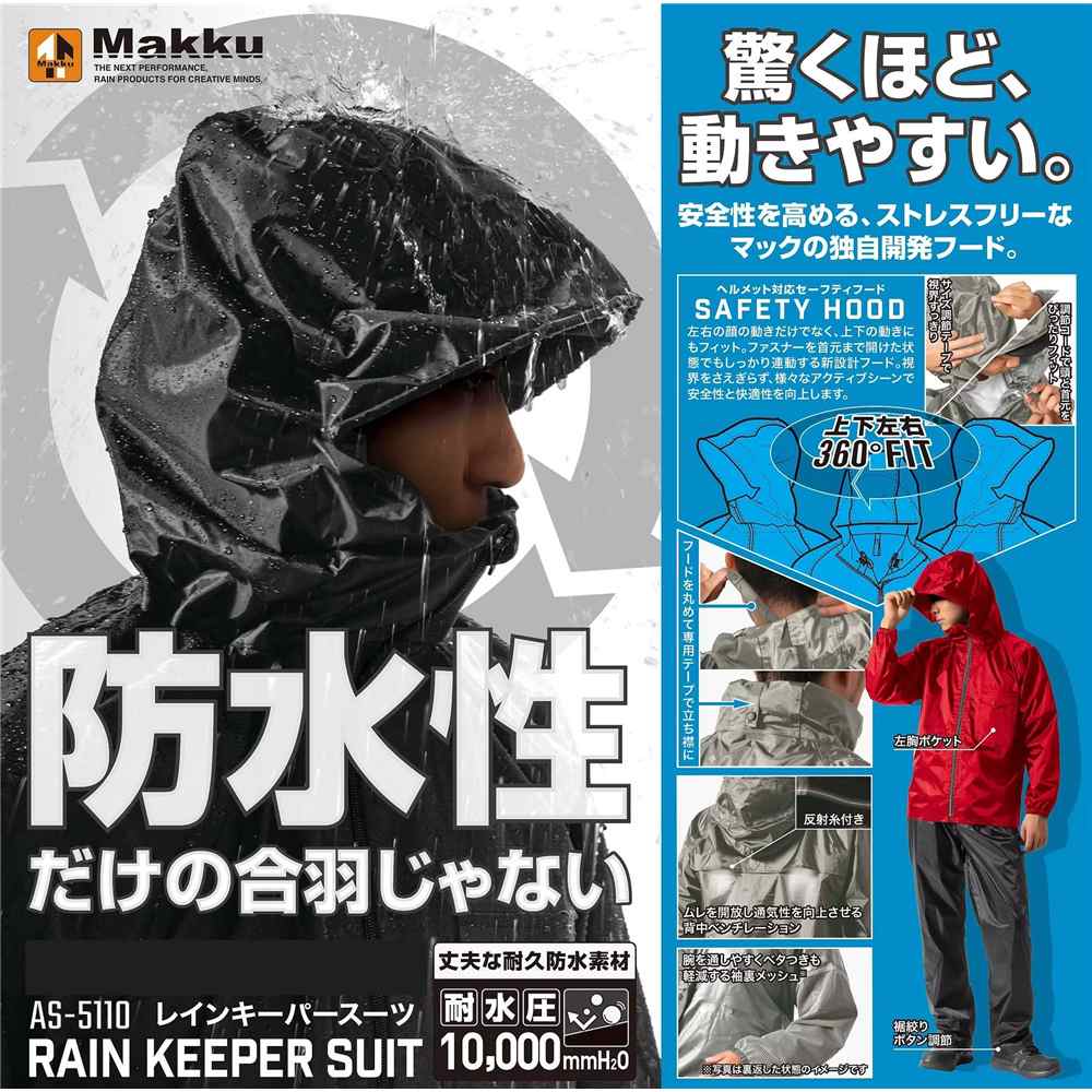 商品情報商品名レインキーパースーツ 3Lサイズ ブラック×ブラック [レインウェア レインスーツ 合羽 上下セット フード付き]メーカーマック 規格/品番 AS-5110 サイズ ●3Lサイズ 重量/容量 おすすめ ●丈夫な耐久防水素材のレインスーツ●表生地は環境に配慮した非フッ素撥水●縫い目には、防水性を高めるシームテープ加工●ヘルメット対応セーフティフード●左右の顔の動きだけでなく、上下の動きにもフィット●ファスナーを首元まで開けた状態でもしっかり連動する新設計フード●視界をさえぎらず、様々なアクティブシーンで安全性と快適性を向上●フード後頭部にあるサイズ調整テープで視界スッキリ●首元の調節コードで頭と首元をぴったりフィット●フードを丸めて、専用テープで立ち上げ襟に●ムレを開放し通気性を向上させる背中ベンチレーション●腕を通しやすくベタつきも軽減する袖裏メッシュ●脚丈長さにピッタリ合わせる裾絞りボタン調整 仕様 ●耐水圧:10000mmH2O