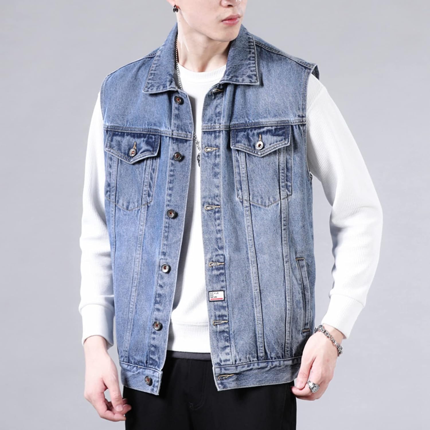 デニムベストのカラーはトレンドカラーであるインディゴとなっており、流行をうまく取り入れながらも さりげない大人の着こなしとなっています。
