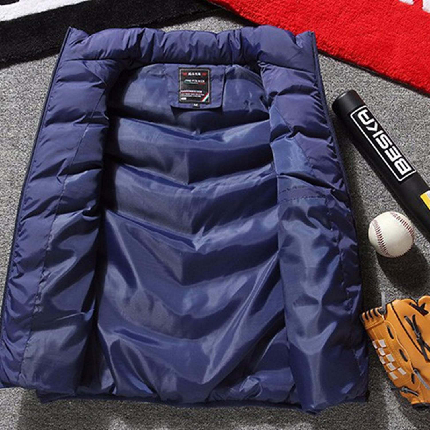 スタンドカラーデザイン、首回りを包み込む仕上げで着心地が良く、保温効果もあります。