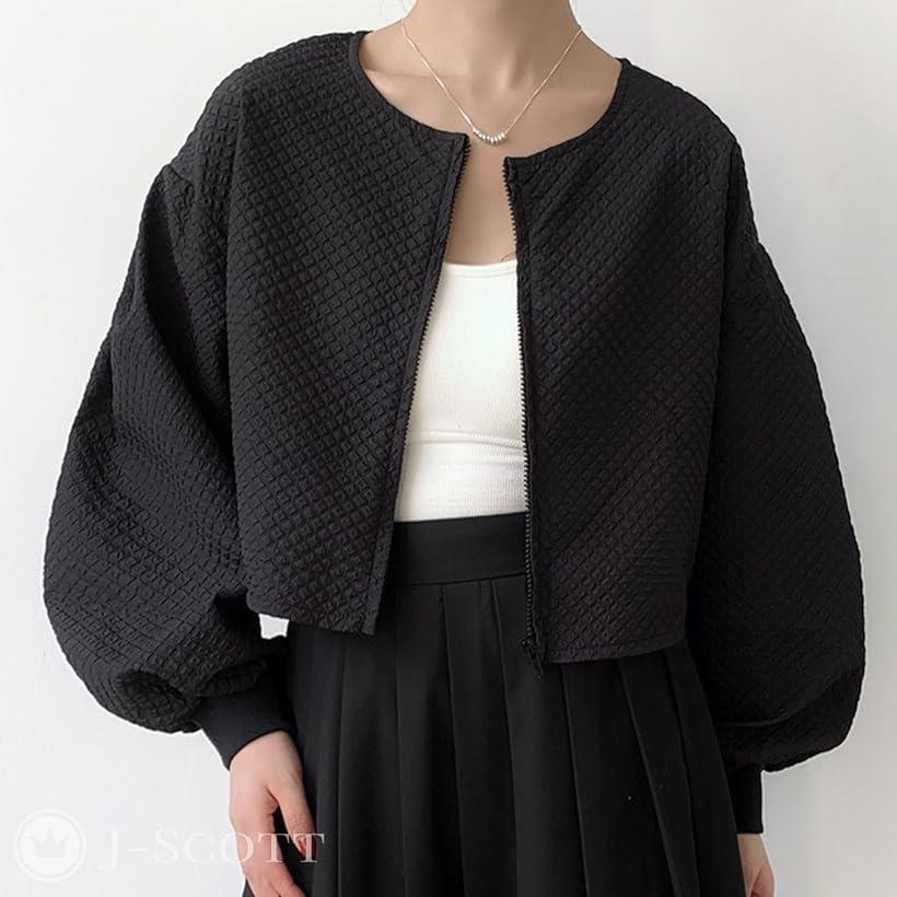 バリエーションコード : 2b993ys56g商品コード2b993ys56g商品名ジェイスコット裏地付き ショートジャケット ブルゾン ふんわり袖 エンボス加工 ジップアップ JS155-BK-LブランドJ-Scottカラーブラックサイズ等L「端正に洒落感高まるショートジャケット」 凛とシックなムードをまといながら、たっぷりとボリュームのあるスリーブが 女性らしい華やかな着こなしに導いてくれるショートジャケット。