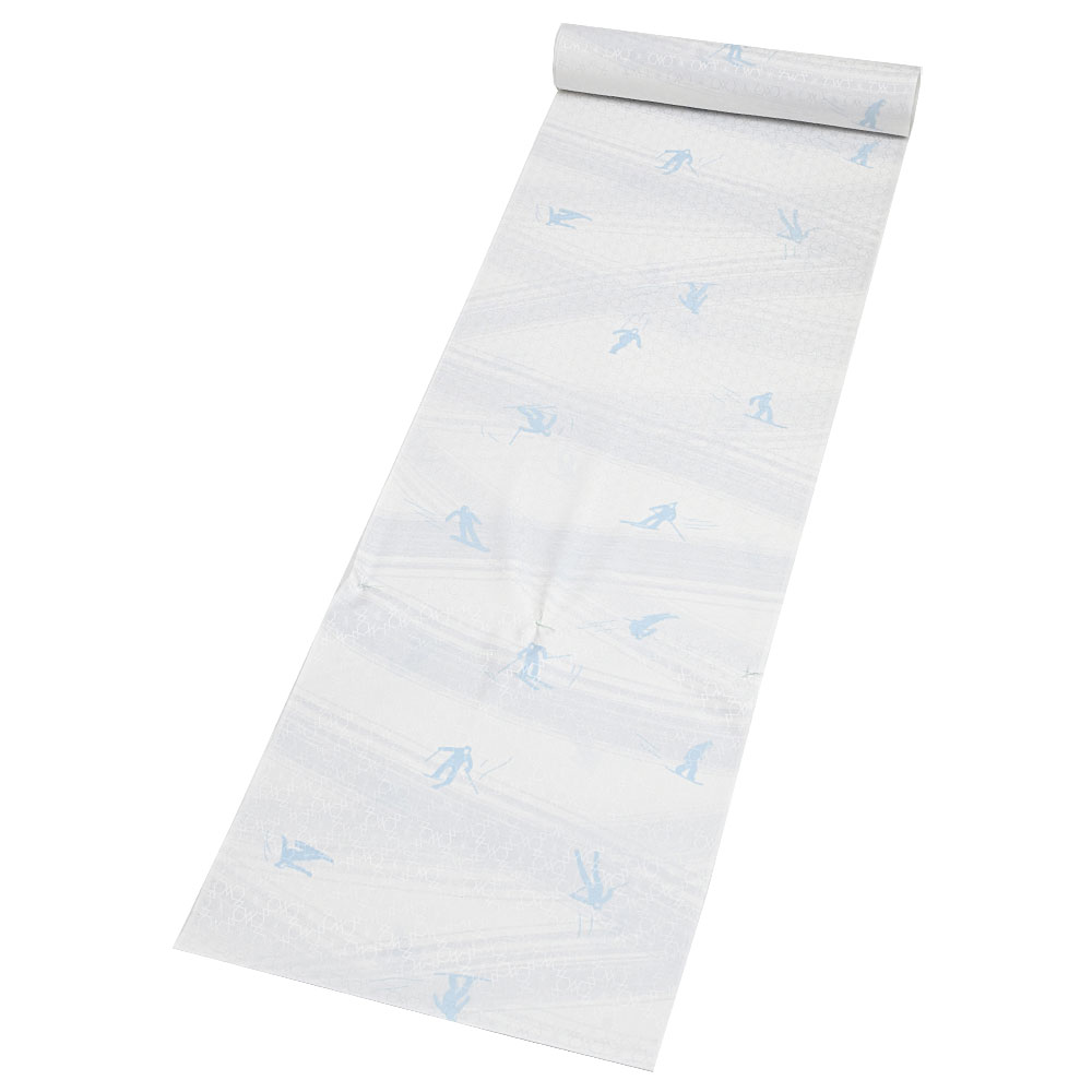 ・こちらは冬のゲレンデを思わせる淡いお色に、スキーやスノーボードを楽しむ人々が描かれたユニークな一枚。
