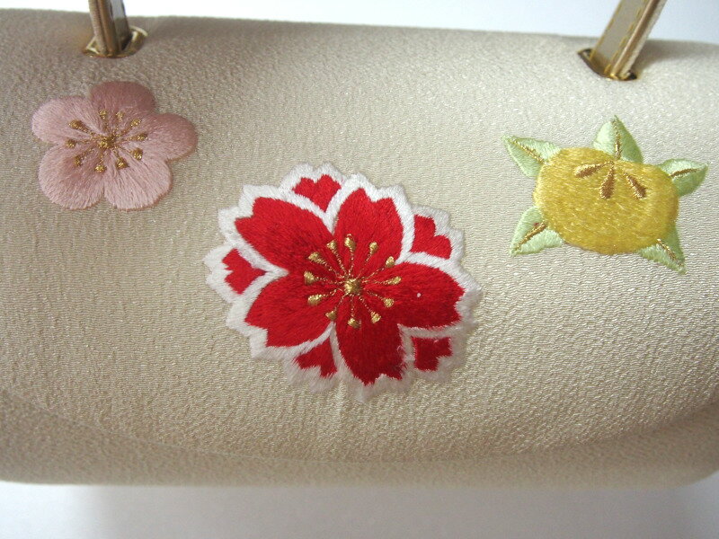 刺繍がとっても可愛い! 振袖にも良いかもサイズ:横18cm×巾11cm×高さ11cm(取っ手含まず)ポリエステル・レーヨン 日本製