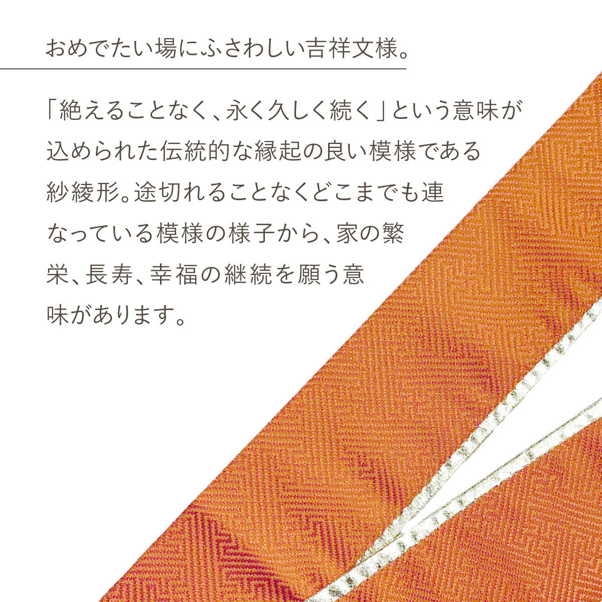「絶えることなく、永く久しく続く」という意味が込められた伝統的な縁起の良い模様である紗綾形。
