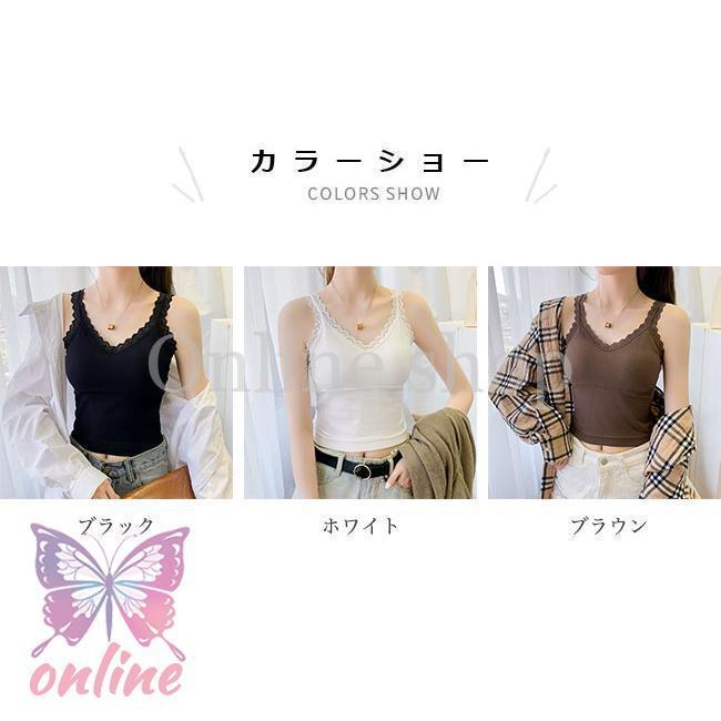 ブラトップ レディース キャミソール カップ付き ノンワイヤー レース ブラキャミ トップス ノースリーブ ベアトップ タンクトップ 胸パッド付き レースキャミ インナー 下着 レイヤードコーデ 重ね着風 ブラック ホワイト ブラウン選べる3色展開、レディースブラトップがブラの重ね着がいらず、胸パッド付きで1枚着OK通気性/吸湿性に優れ、肌に優しいストレッチ素材を採用ノンワイヤー仕様でストレスフリーの着用感、動きやすさ的にも申し分なしブラ部分はズレ防止の設計となっていて、そして締め付け感もしません脇肉を寄せて、胸をきちんと持ち上げ大人女性ならではの美しいボディーラインを作り出しますデイリーはもちろん、おうちでのリラックスタイムにも便利なインナーですメインとしても、透けトップスやカーディガンなどと重ね着してもいろんな着方が楽しめて、幅広い場合で活躍出来ますカラー:ブラック ホワイト ブラウン素材 ナイロン ポリウレタンサイズ(cm) FF 着丈39 対応バス70A〜D/75A〜D/80A〜D/85A〜D おすすめ体重40-67kgご注意: