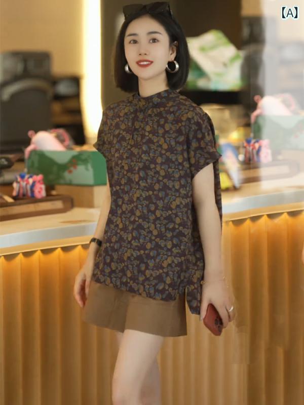 ブラウス レディース ミセス 春夏 カジュアル リラックスフィット 着痩せ 体型カバ...