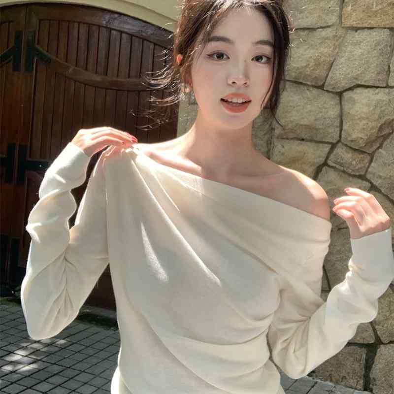 トップス 長袖 ショート丈 オフショルダー セクシー シンプル【大きいサイズ レデ...