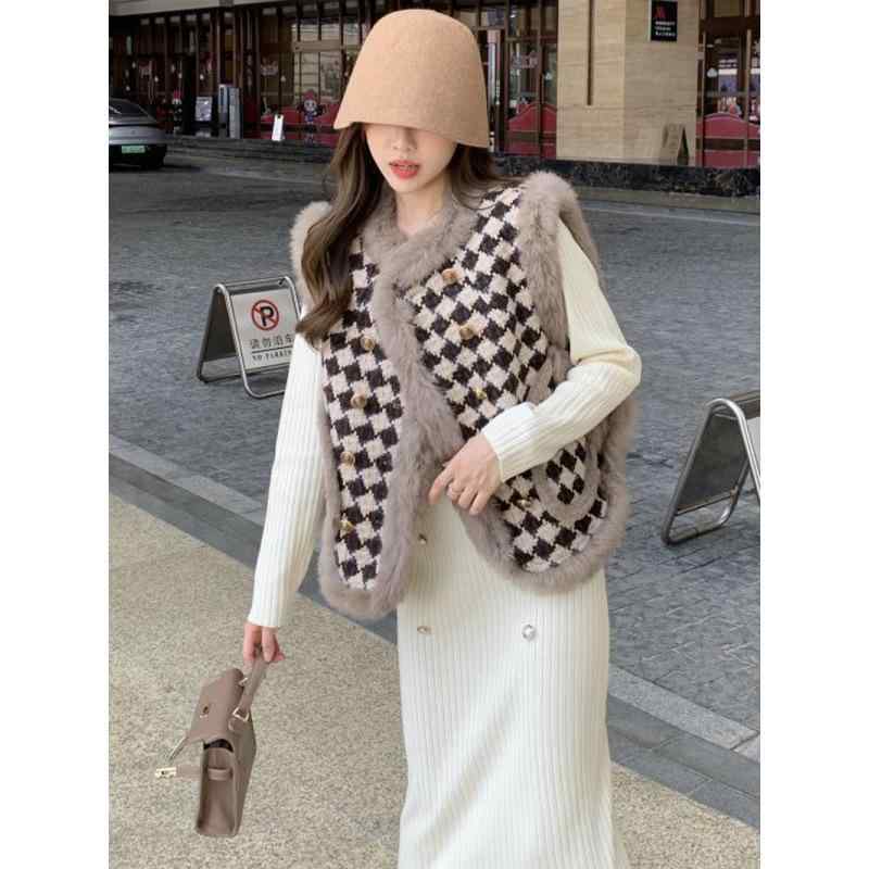 ベスト レディース 千鳥格子柄 Vネック 秋冬 厚手 あったか 暖かい ゆったり 粗 tw...