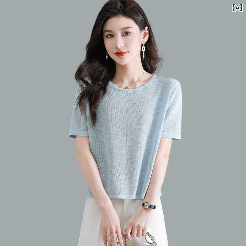 シンプル 半袖 ニット レディース Hengyuanxiang 夏 ラウンドネック 冷感 半袖 ト...