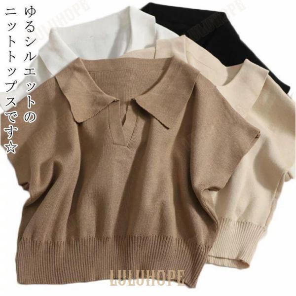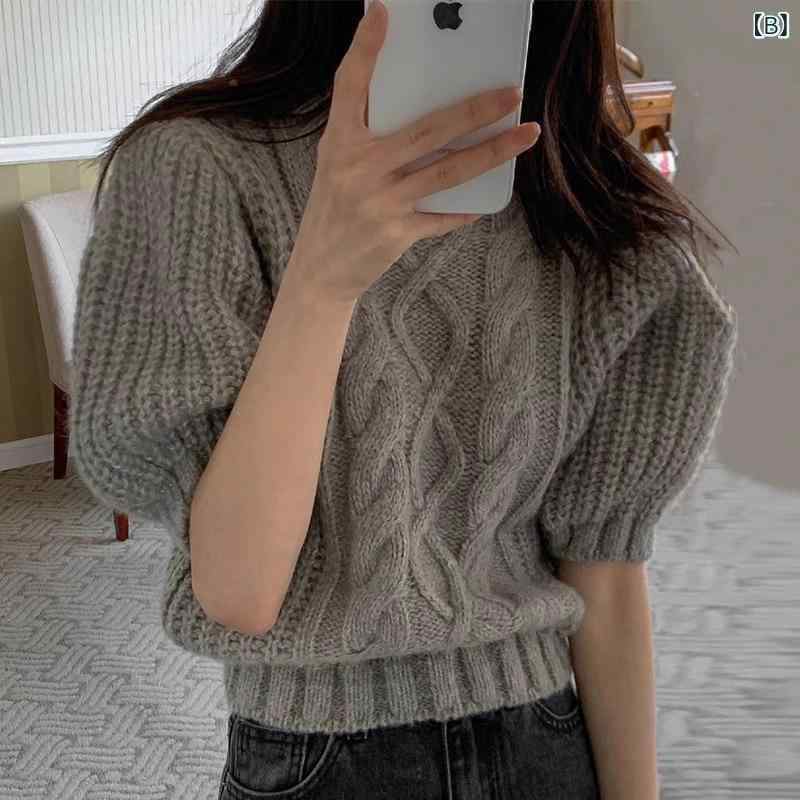 ニット レディース かわいい 春夏 半袖 丸首 パフスリーブ セーター トップス シル...