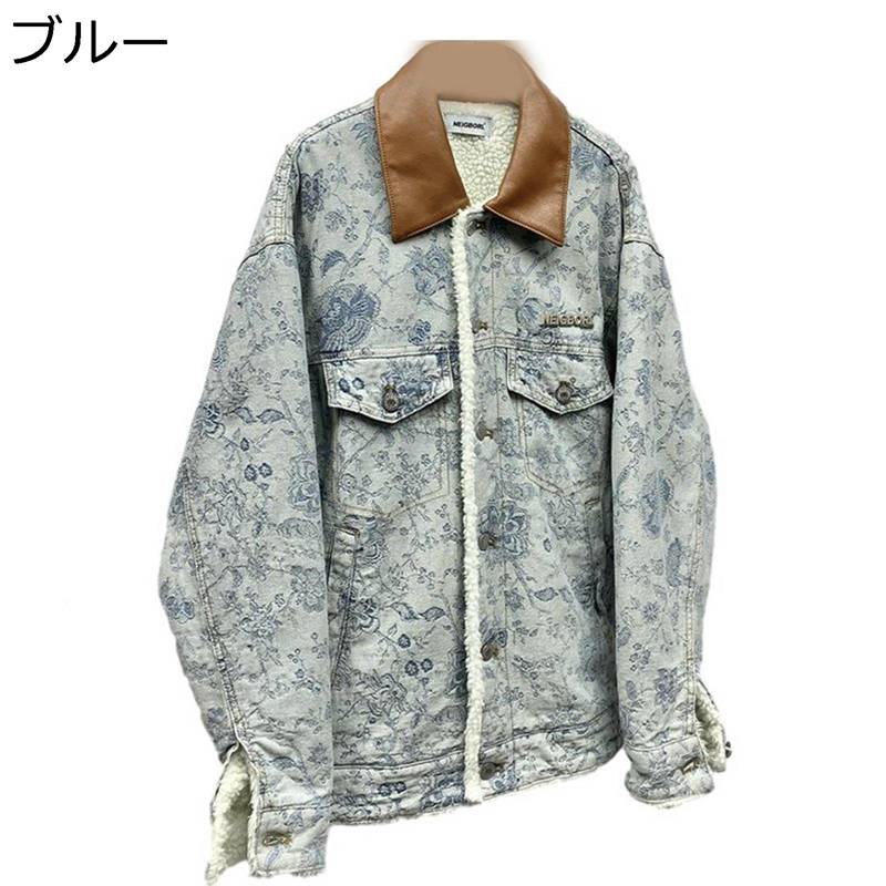 ボアデニムジャケット PUレザー メンズ 刺繍 Gジャン ジャンパー レディース 裹起...