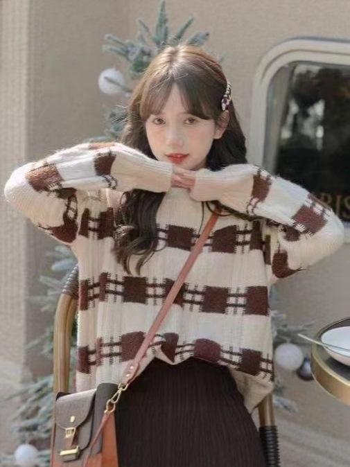 【2025秋新作】モヘアラメバイカラーニットプルオーバー 高品質 ラメ糸 軽量 暖か...