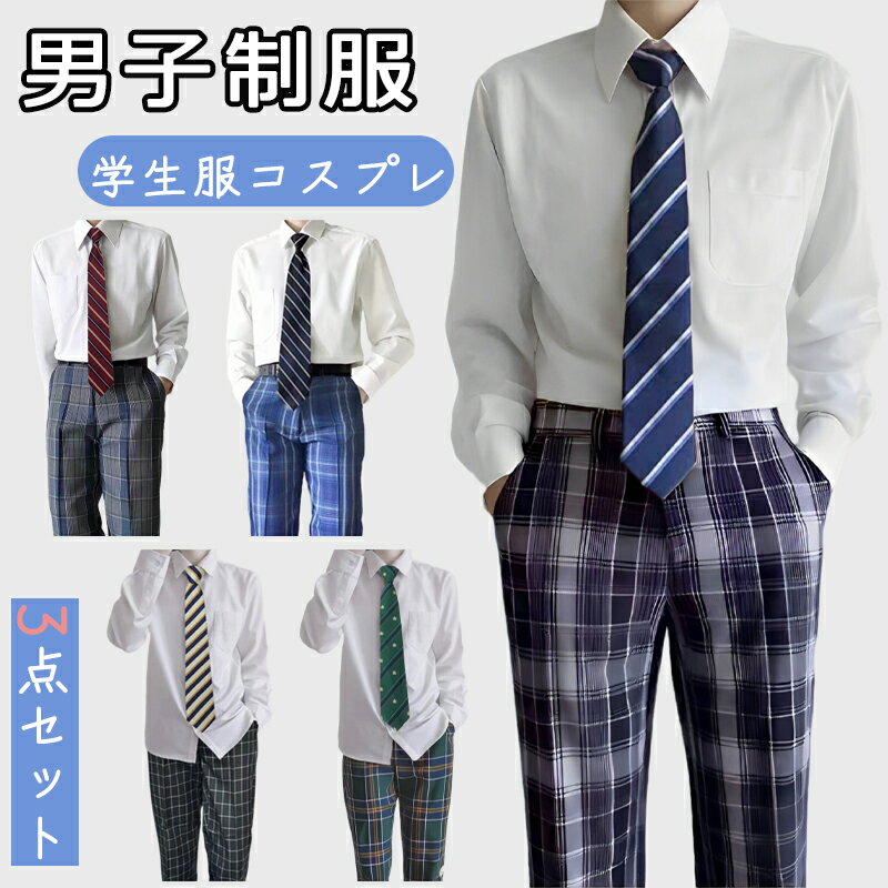 男子制服 コスプレ 学生服 メンズ 3点セット チェック DK 長袖シャツ ズボン ネク...